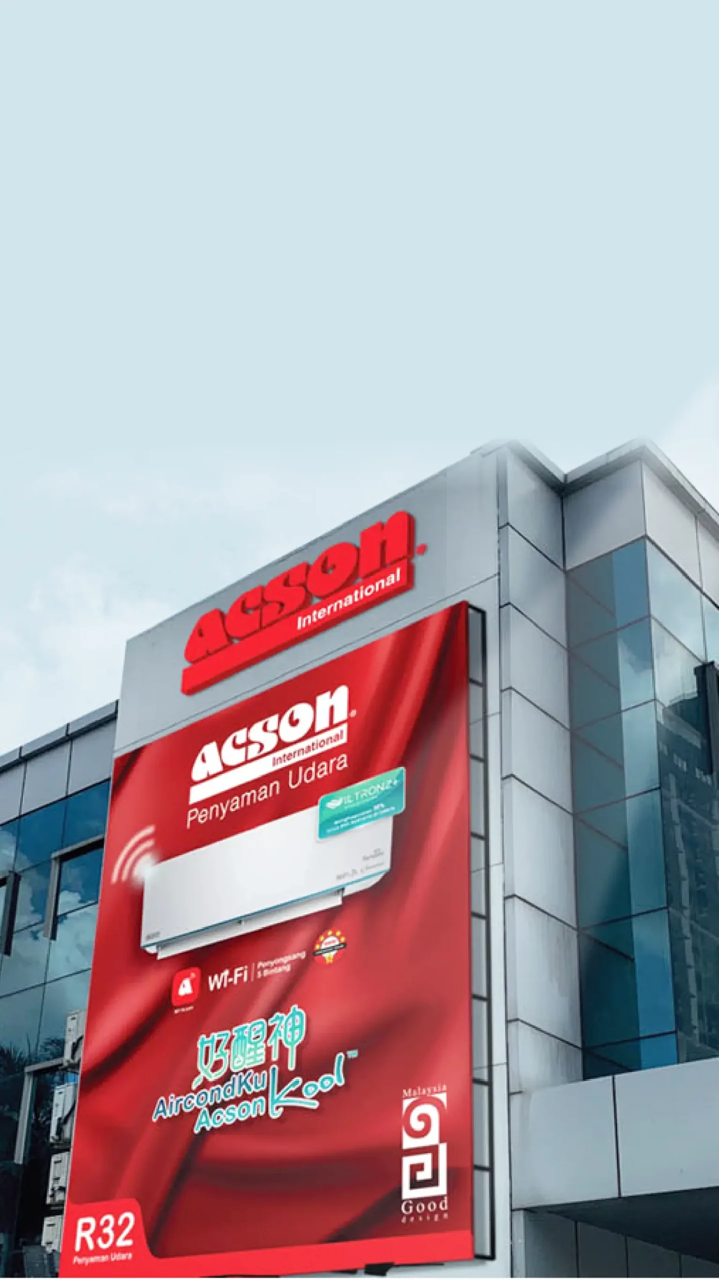 Acson Malaysia Sales & Service Sdn Bhd 198401017130 (129688-D) is a subsidiary of Daikin Malaysia Sdn Bhd which was acquired by Daikin Industries Ltd, in September 2006. Since its incorporation in 1984, Acson has grown positively from an air conditioning business, selling high quality and proud Malaysian-made products ranging from air quality solutions to smart home (energy savings) solutions and aircon services.