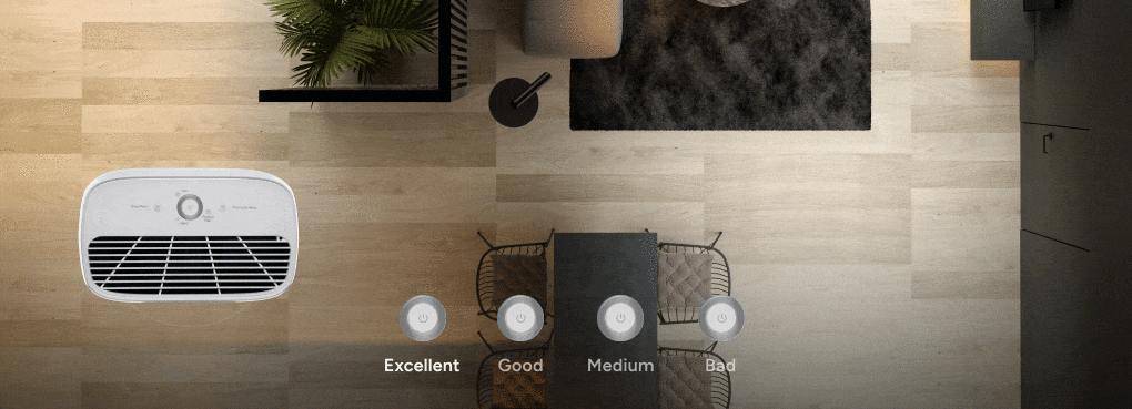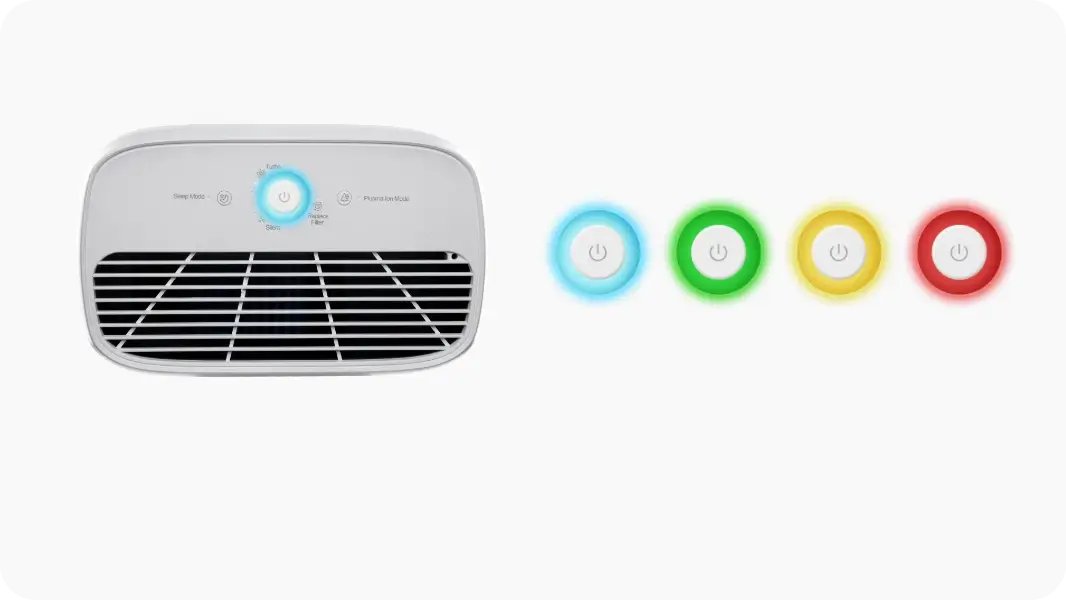 Air quality indicator of 4 colours display the corresponding colour according to surrounding air quality.
