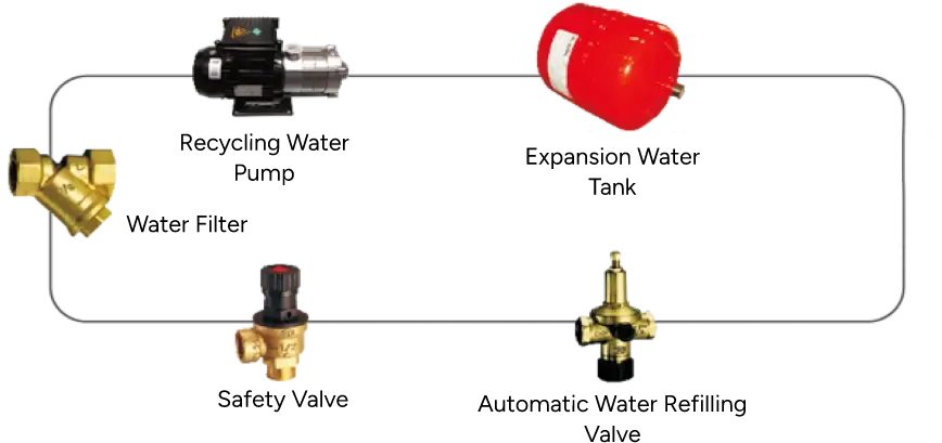 The whole system is provide with a complete set of accessories. Installation can be easily completed by connecting the water pipe to the terminal.