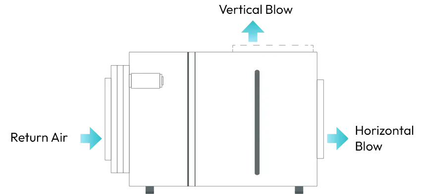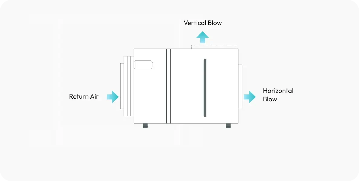 Air discharge can be converted from horizontal to vertical discharge or vice versa which provides flexibility in installation at site.