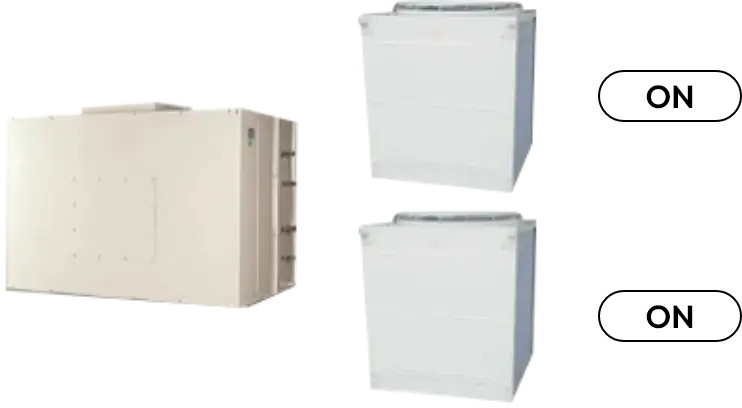 Acson Ducted Split System is designed with two or more separate refrigerant circuits with multiple individual compressors. By doing so, the unit has part load capabilities. This will improve the reliability and energy efficiency especially during low loading operations.