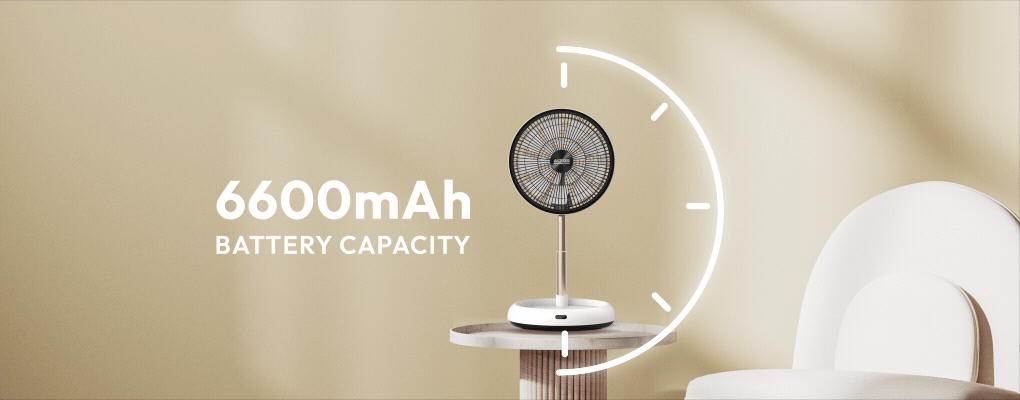 Experience cordless convenience with the powerful 6600mAh rechargeable battery. Stay cool and comfortable indoors or outdoors, without the need for a power supply.