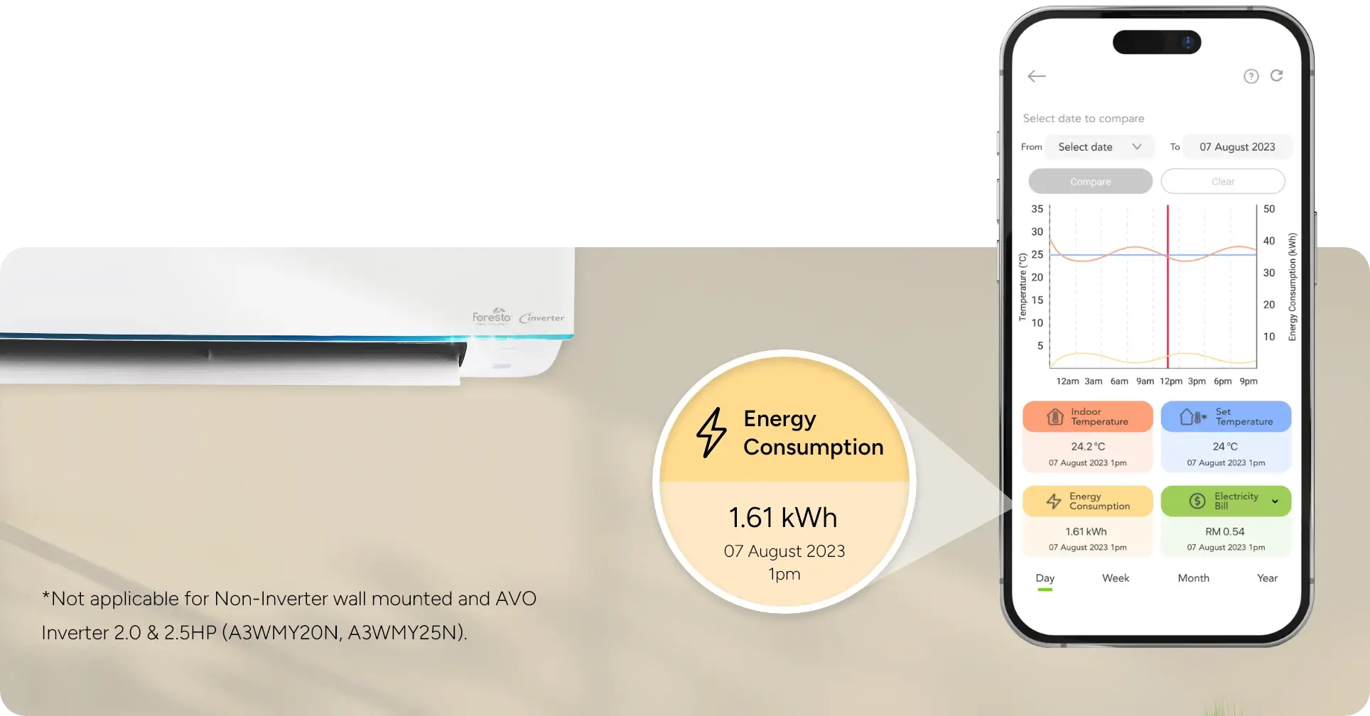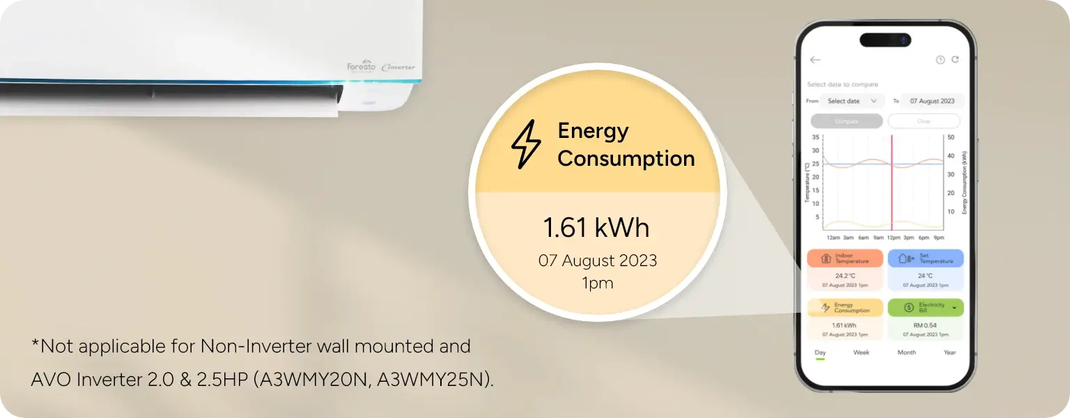 The compatible inverter and non-inverter air-conditioner are able to track indoor temperature and set temperature history.