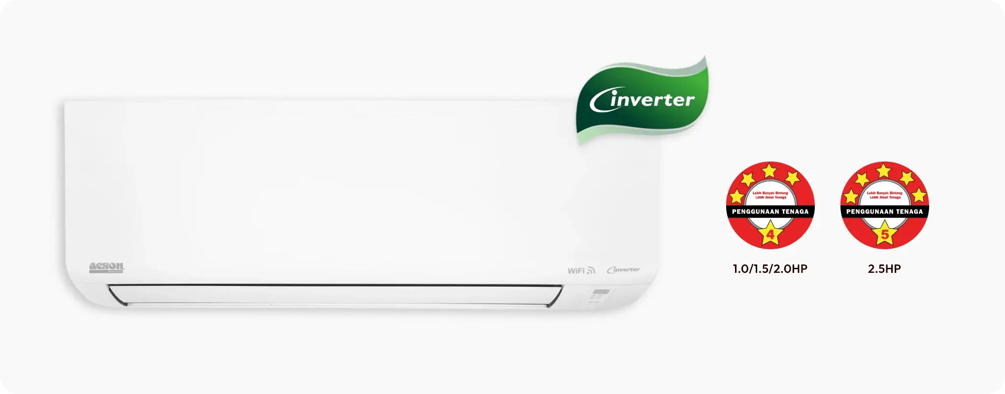 Acson R32 inverter line-up Reino Series which attained highest 5-Star Energy Efficiency Rating endorsed by Energy Commission of Malaysia which energy saving can reach up to 47%.
